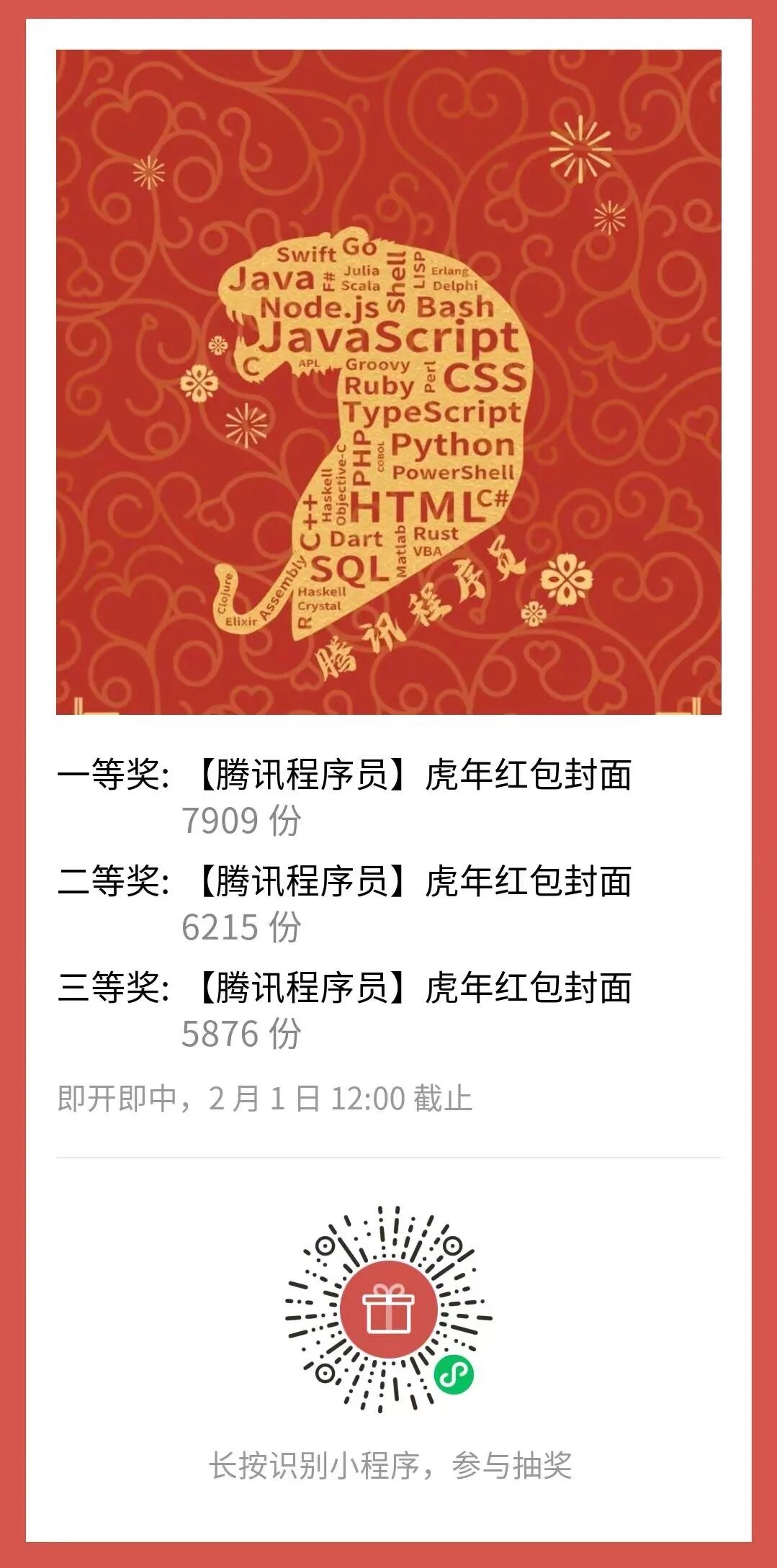 如果你发现被抢完了,可以关注腾讯技术工程公众号和腾讯程序员视频号,后面可能会补发。
