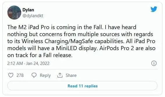 但 Dylandkt 表示,由于对 MagSafe 无线充电功能的担忧,新款 iPad Pro 可能不会具备这一功能。