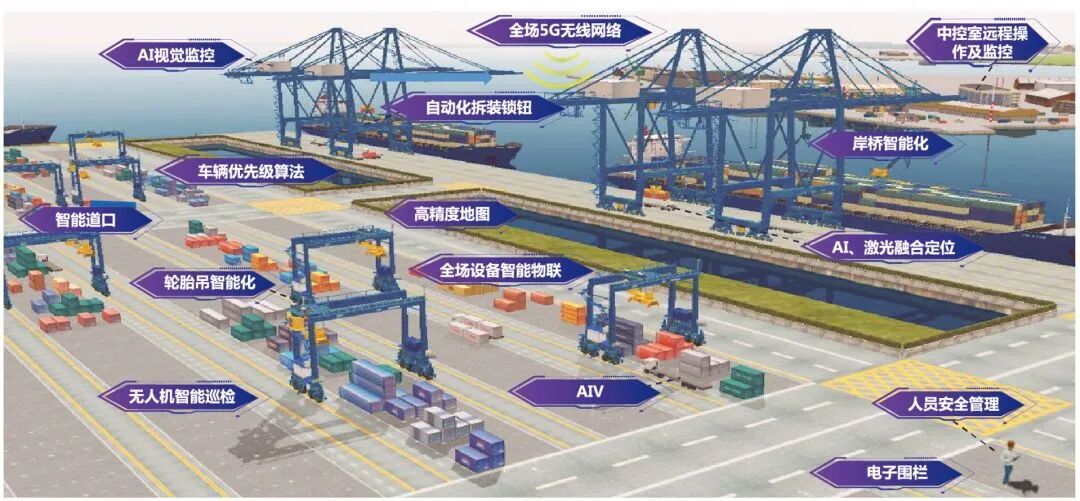 随着“十四五”期间国家更加重视新基建,在政府需求的驱动下,交通与AI、云计算、5G等新一代信息技术的融合成为一个增长迅速的领域,其中,发展智慧港口成为一大各大港口区域的一大诉求。在近日发布的《“十四五”现代流通体系建设规划》中,中央提出要加快交通基础设施智能化升级,打造智慧港口,提升港口装卸、转场、调度等作业效率。在今年9月交通运输部印发的《交通运输领域新型基础设施建设行动方案(2021—2025年)》,将智慧港口建设行动列为主要任务,要求港口经营单位与社会各界合作推进港口自动化建设。提出明确要求:“着重推进厦门港、宁波舟山港、大连港等既有集装箱码头的智能升级,建设天津港、苏州港、北部湾港等新一代自动化码头;建设港口智慧物流服务平台,加强港口危险品智能监测预警;推进武汉港阳逻铁水联运码头建设,探索内河传统集装箱码头自动化改造。”在这几大圈定的港口范围内,2021年已经陆续涌现出几大“全国首个”、“全球首个”的标杆项目。除了前文提到的深圳妈湾港,2021年10月,天津港集团联合华为、中国移动等公司的天津港北疆港区C段项目,据称是全球首个智慧零碳码头;广州港集团与中国联通、振华重工的能联合的广州港南沙四期,据称是粤港澳大湾区首个全自动化码头;今年12月,山东港口烟台港“全系统、全流程、全自动”全球首创干散货专业化码头控制技术发布;同月,盐田港东作业区自动化码头建设正式启动……![]()