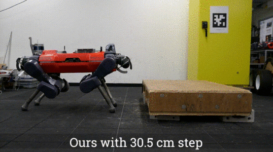▲ANYmal与其他四足机器人跨越障碍物对比