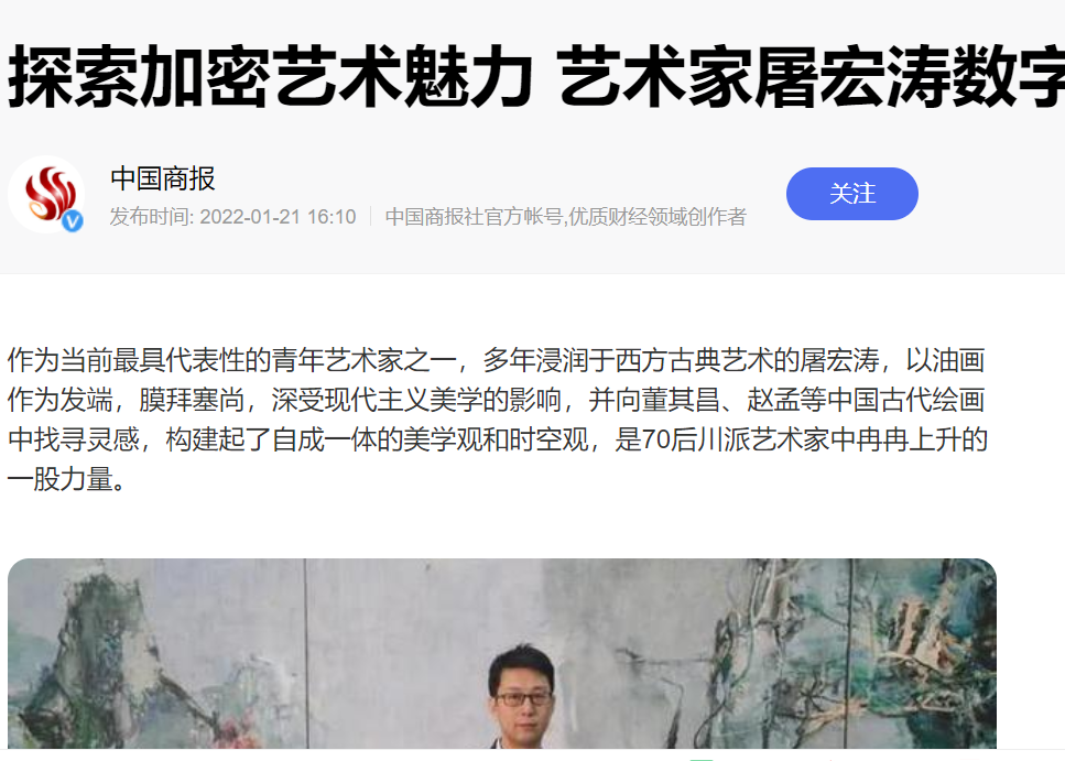 此次屠宏涛的首个数字藏品将在BiBiNFT 全网首发,受到了多方的关注。