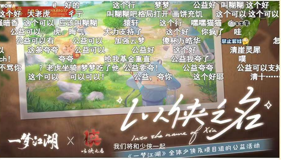 或是公益企划。过去,《一梦江湖》一直热心耕耘公益事业,既在阿拉善的荒漠中种过树,也在云南华坪县捐赠了图书室。如今,他们决心把公益事业打造成一个长期企划——“以侠之名”,并在2022年开展三项公益活动:为边远山区捐书、带去光芒,以及守护野生动物,践行“传承侠义精神,为社会发光发热”的正向价值观。