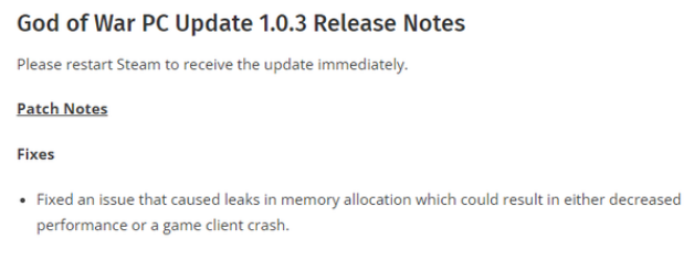 《战神4》发布补丁1.0.3 解决闪退掉帧问题