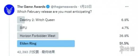 TGA2月最期待游戏投票结果出炉 《艾尔登法环》第一