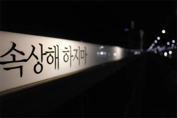 这条汉江记录了韩国战后从一片废墟,在资本与资源都极度匮乏的情况下,实现经济迅猛发展,跻身亚洲前列的惊人成果。同样在汉江上,共有 27 座桥梁,全长约 494 公里,每年发生约 500 起自杀和自杀未遂事件。在这些横跨汉江的桥梁中,从麻浦大桥跳江的自杀人数最多。2012 年有 15 人在此跳江,从那年起,麻浦大桥上就增设了一些预防自杀的暖心标语。