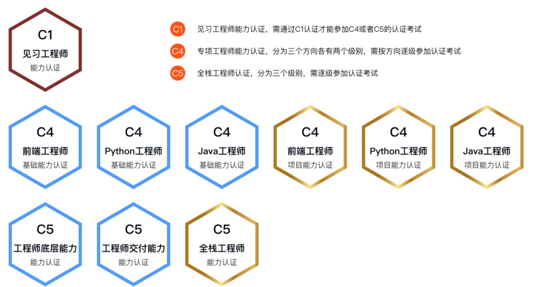 考试内容对标名企JD,侧重考核工程化/交付能力,更受企业青睐,通过人员,考试通过即获得相应级别的技术能力资格。