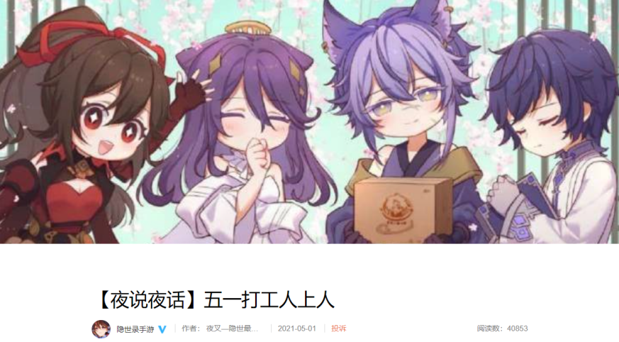 这个栏目一共出了35期,内容详实,饱含情感,整理在一起就是一部出色的同人小说。像2021年五月,以“劳动节”为题材创作的同人故事,既有打工人假期加班的辛酸,又有朋友之间贴心的温暖,用游戏串联现实,有着十足的人情味。