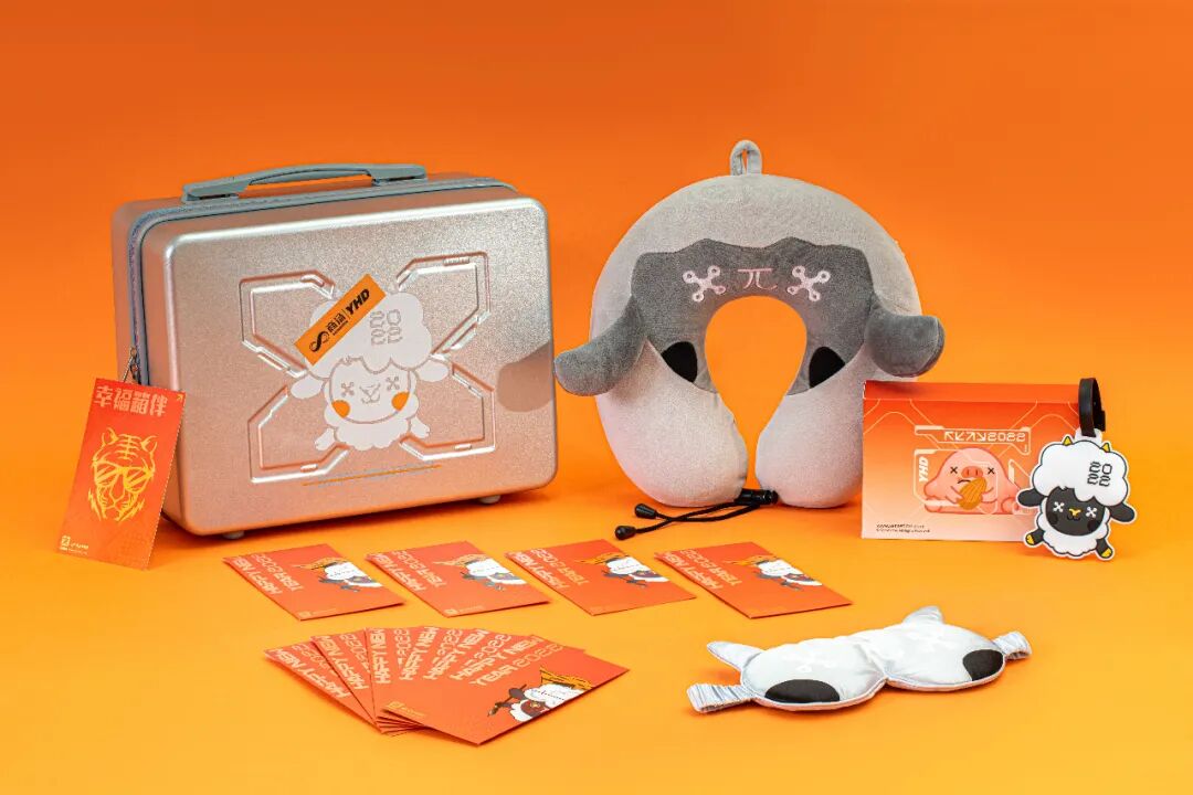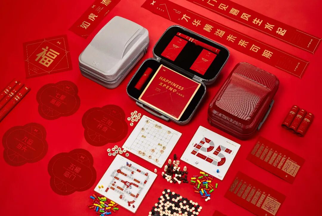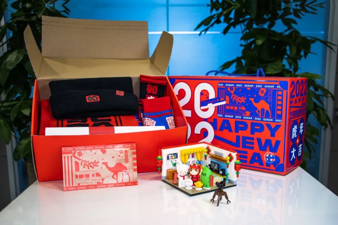 期望与每一个新发现的相遇,让我们一同领略未来世界的科技魅力,希望大家虎年吃好玩好睡好,财源滚滚,虎虎生威!2022虎年新春,与小鹏一起潮酷同行、探索未来,在新的一年里幸福鹏涨!礼盒包括盲盒迷你车型行李箱、1套百变桌游、1套对联福字、4个窗花、20个红包。盲盒迷你车型行李箱的设计源于G9车型,以更亲近、更便携的新形式——“迷你行李箱”,融入日常生活场景,与鹏友一起快乐同行,重新定义潮酷生活。共有新春红、天辰灰、镭射银三款,其中镭射款有20%概率抽到。2022,壬寅虎年,一个强盛勇猛的新开始。百兽之王,神兽之年,新的一年虎虎生风。携程旅行今年的新年礼盒以「虎图腾」为设计灵感,用插画形象演绎虎文化。以「全家桶」为设计语言,结合春节欢聚时的用餐、分享场景,用披萨盒、薯片筒、饼干盒、铁皮桶,装点新年对联、红包、餐盘、贺卡、陶瓷罐(含香氛蜡烛),组成这套「虎虎全家桶」新年礼盒。去哪儿旅行的新春礼盒也很好地把企业文化和实用性做了兼具。新春针织三件套:柔暖高弹易造型的圆机帽、超有个性的respect围巾、定制情侣款潮流长袜,柔软的纱线交织出潮酷feel,超A又飒,是这届年轻人的态度。此外,还有一个定制版的新春积木,可以和孩子一起玩。