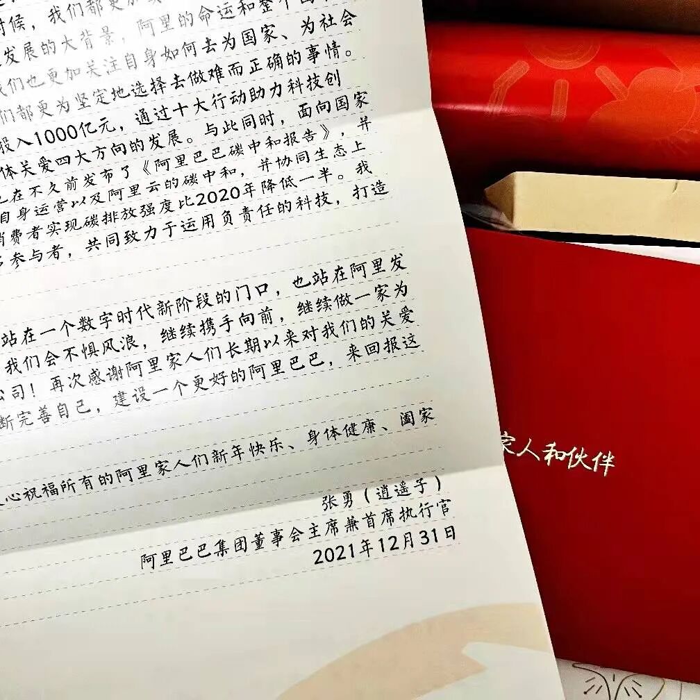 阿里巴巴延续每年的传统,为所有员工准备了一份精美的“阿里家书”礼盒。今年,7万名阿里人亲手制作了明信片,作为一份给亲友的小惊喜,随家书一起寄回家,显得格外有心意。