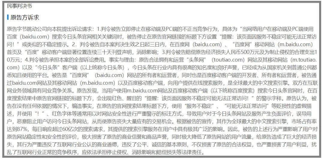 【百度被判向字节跳动赔偿50万元】中国裁判文书网公布了字节跳动起诉百度一案二审判决情况,法院认为百度方面构成不正当竞争,维持原判(北京百度网讯在显著位置发表声明消除不良影响,并赔偿相关损失50万元)。