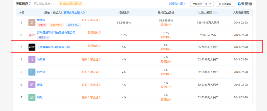 上海星线成立于2019年3月,大股东焦扶摇曾任前《少女前线》日本地区负责人。在获得鹰角投资前,上海星线曾获叠纸网络的投资,占股19%,是公司的第二大股东。
