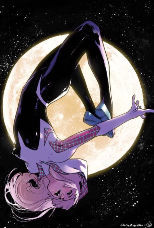 而漫威也顺势推出了一系列变体封面,将格温与旗下更多英雄的形象元素杂糅在一起,塑造出诸多新形象,以此来试探读者的喜好。
