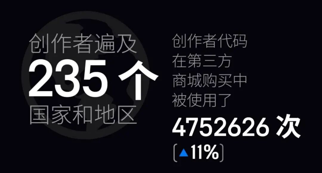 另外,在创作者层面,得益于Epic的大力推动与支持,创作者代码在第三方商城购买中被使用了4752626次,同比去年增长了11%。