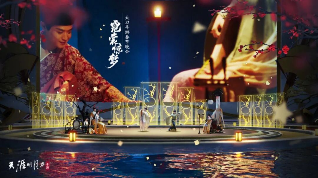 这是天刀手游“春节晚会”进行时中的一幕小切片。尽管全程在游戏内举行,但无论是沉浸式直播、亦或是水乳交融的互动,都让这台晚会有了逼近现实的满满年味儿。