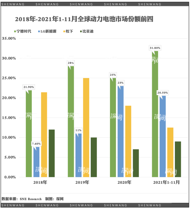 2015年到2018年中国启动动力电池白名单政策,曾毓群抓住了时代机遇,迅速吞掉日本电池企业松下在国内的盘子,凭借国内新能源汽车领先于世界的高速发展,于2017年超越日本电池企业,和LG化学拉开差距,登顶并稳居全球动力电池市占率排行榜。