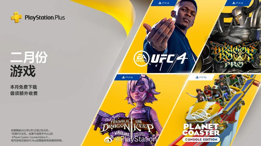PS+二月会免阵容公开,除了《过山车之星:主机版》外,《终极格斗冠军赛4》、《小缇娜强袭龙堡:奇幻之地大冒险》均在其中,港服还加送了《龙之皇冠Pro》,各位到时候记得领啊。