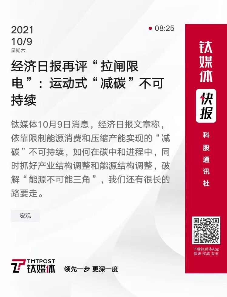 经济日报再评“拉闸限电”:运动式“减碳”不可持续