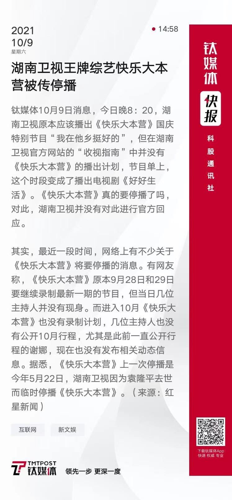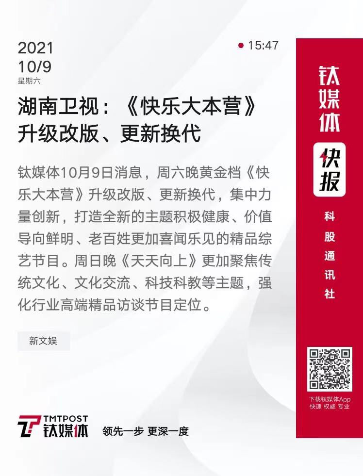 湖南卫视:《快乐大本营》升级改版、更新换代