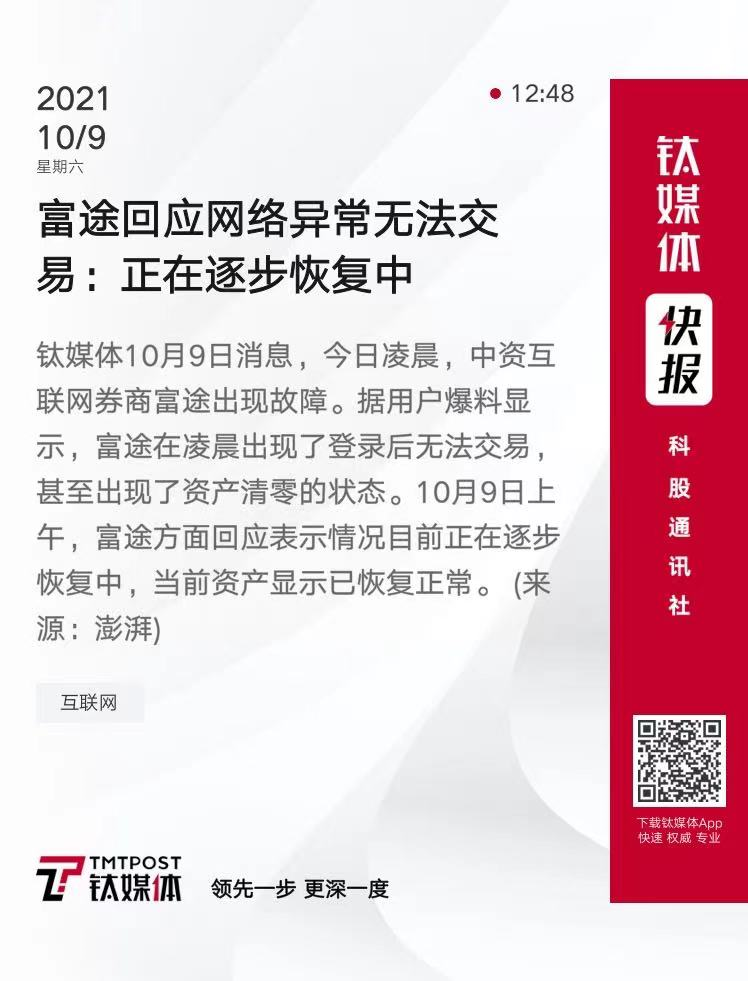 富途牛牛因网络出现异常,部分客户交易服务出现中断