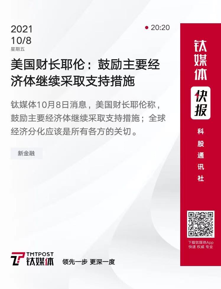 美国财长耶伦:鼓励主要经济体继续采取支持措施