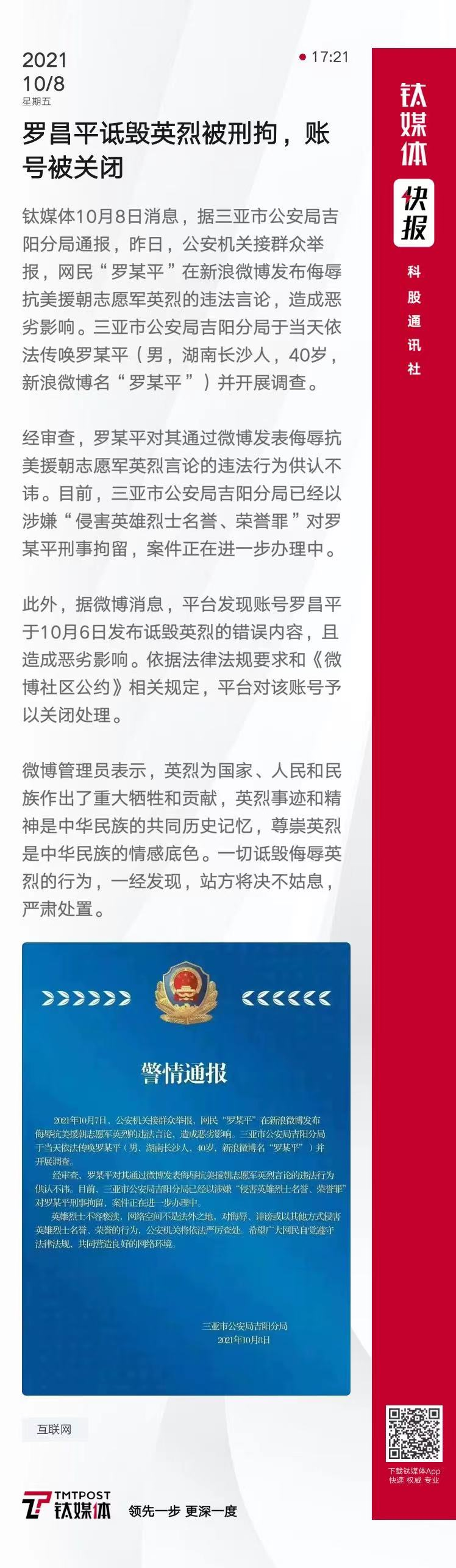 罗昌平诋毁英烈被刑拘,账号被关闭