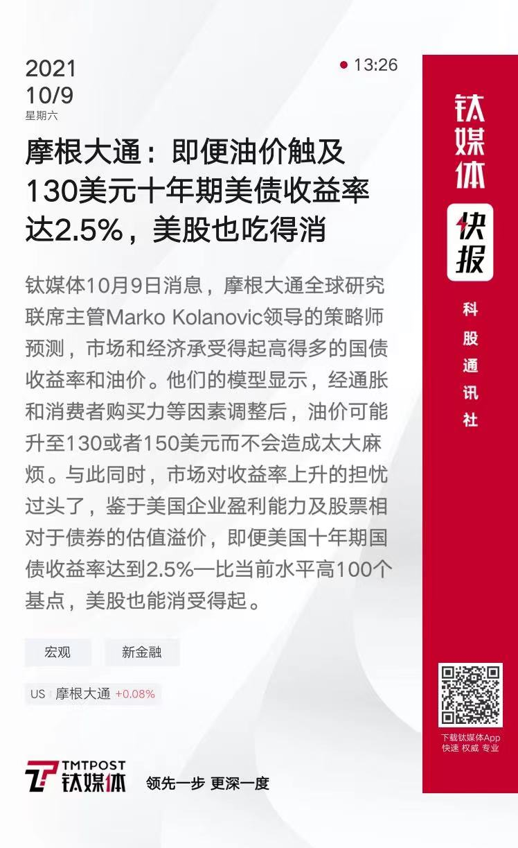 摩根大通:即便油价触及130美元十年期美债收益率达2.5%,美股也吃得消
