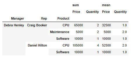 defcreate_pivot(df,infile,index_list=["Manager","Rep","Product"],value_list=["Price","Quantity"]):
