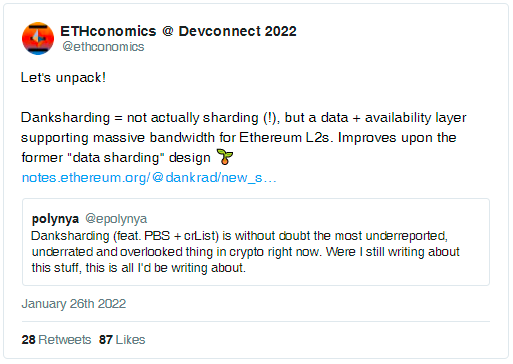 Polyna:是两件不同的事情。通用 DA 项目当然可以获得关注。但这种网络效应在很大程度上与成为一个结算层所需的东西 (包括优质的货币、高经济安全性、广泛的 Token 分布、流动性的广度和深度、林迪效应等) 无关。此外,以太坊正在构建自己的高度可扩展的 DA 层,以补充其已建立的结算层。现在,可能有一些应用并不关心这些,在这种情况下,我想说这些应用的目标市场与以太坊不同。