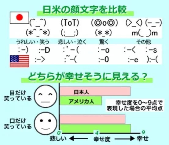 而颜文字自然也有一些“地域差异”。一位日本学者还曾对此讲解: