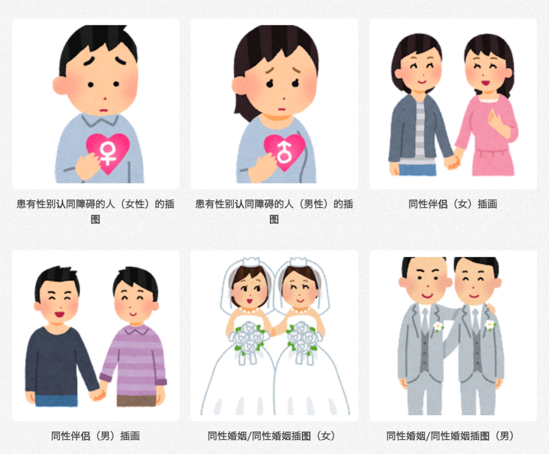 又或者,你的期末PPT的主题有关性少数人群,可能只有在irasutoya上才能找到简洁又得体的图示。