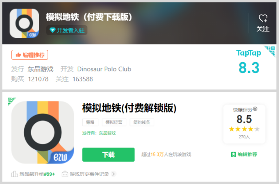 《模拟地铁》由新西兰的独立游戏工作室Dinosaur Polo Club制作,中国独立游戏发行商东品游戏发行。在如今还有许多城市模拟器以高精度的建模、错综复杂的建设机制设计而犯难时,《模拟地铁》早在2015年时就将它的“极简主义”与“策略经营”高度结合的巧妙之处展现在了世界玩家面前。