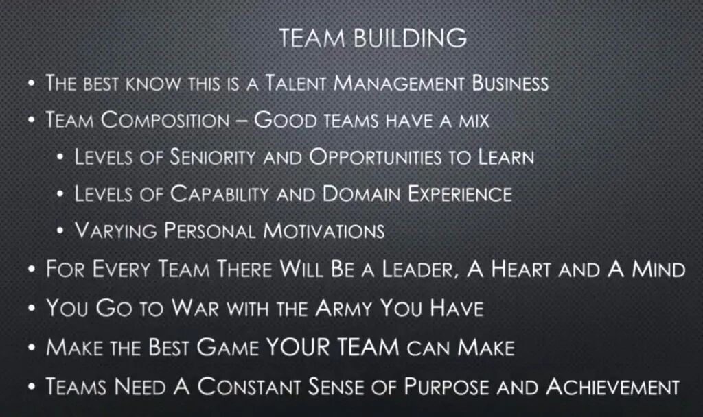 回到音乐行业的经历,真的是人才管理和组建乐队的过程,确保他们做的是自己最擅长的工作,带来最好的结果。这是一个人才管理岗位,你做的不是随机招人做事,而是认真考虑什么岗位需要什么样的人才,确保打造一个“全明星战队”。