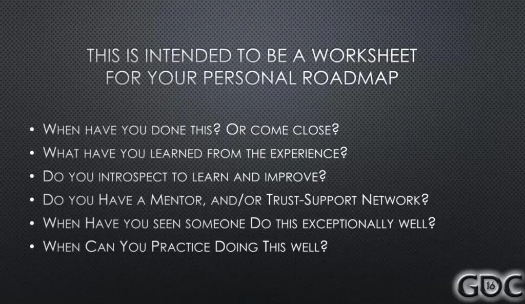更进一步,拓展团队成员的影响力,对我来说,这意味着开放。当你能够拓展团队成员影响力的时候,你就拓展了整个团队的能力,成为了连接团队成员与外界的节点,比如帮助他们寻找技术方案或者讲解技术方案的机会、做GDC演讲或者听演讲的机会,你们就可以学到更多。