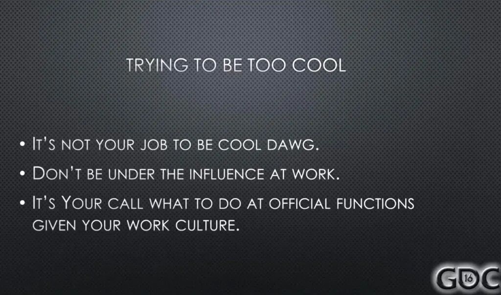 作为游戏制作人,你的工作内容不包括耍酷,我不会告诉你具体的案例,但这里的三件事可以让新人们作个参考,我希望你不会发现这些描述符合你自己,不要成为那个耍酷的人。