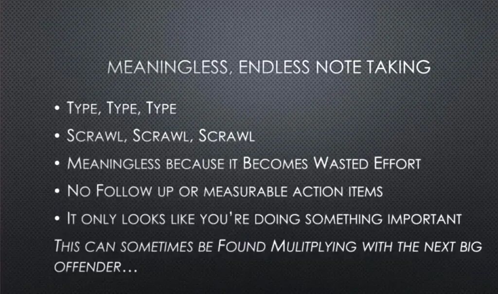 很多人可能都对于经常开会这个问题非常厌恶,我希望所有看到这篇文章的人都把这些事情记下来,你希望做的事情是为团队量身定做的,如果你发现做的事情没有用、没有人记得某次会议上讨论了什么,那就很容易让开会成为走过场。