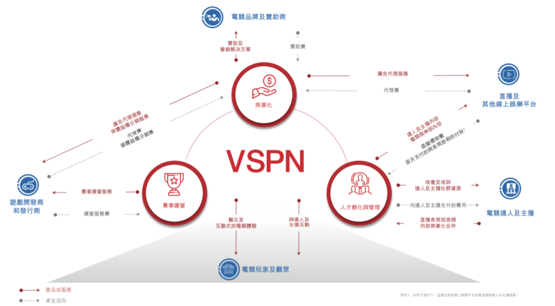 作为全球最大电竞运营商,英雄体育VSPN所从事的赛事运营及相关内容制作业务在整个电竞产业生态中处于中游位置,是链接上游电竞游戏厂商及下游直播平台,品牌赞助商,以及电竞玩家和观众的枢纽。