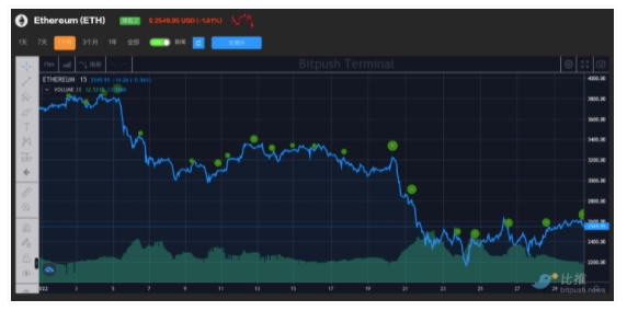 自 2021 年 12 月达到 4100 美元的高位以来,以太坊的估值一直在 3,000 美元至 4,000 美元之间徘徊。然而,以太坊价格最近几天大幅下跌,达到三个月内的最低点。据比推终端数据显示,目前以太坊的交易价格为 2549 美元。