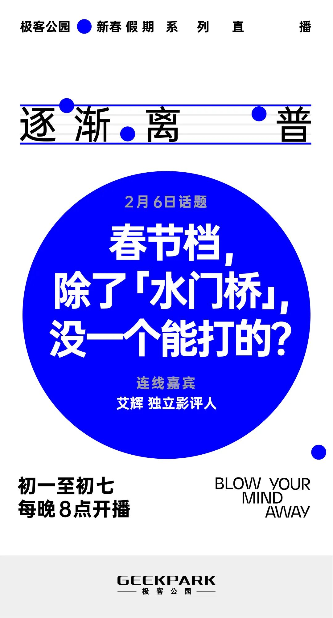 从 2月2日(正月初一)——2月7日(正月初七),每晚8:00,离普编辑部将给大家带来连续 7 天共计 6 场视频号直播,从科技的视角与大家一起交流包括宠物经济、大城市生活、电动汽车、游戏产业、电影春节档、冰雪运动等话题,一定会有你感兴趣的那一个!