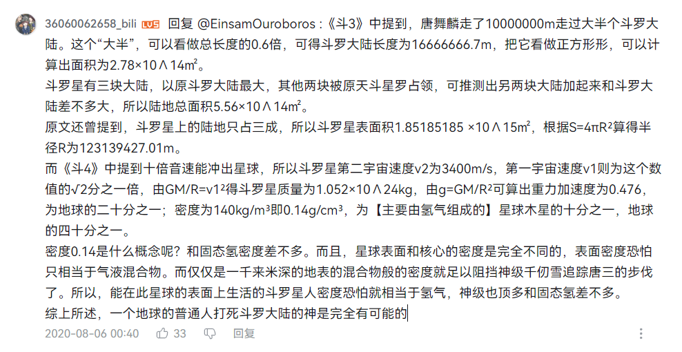 具体计算过程如上,大致得出的结论是,由于作者物理学得不太好,导致《斗罗大陆》整个世界观的基础法则可能有些异常,地球上的普通人一拳打死《斗罗大陆》里的神也不是没可能。