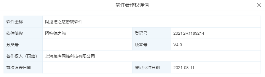 根据天眼查信息显示,上海藤库网络拥有《阿拉德之怒》的软著权,而早在2019年,腾讯就因为《阿拉德之怒》与自家游戏《DNF》高度相似,将游戏发行商恺英网络告上法庭,审理此案的长沙中院判决恺英在内的四家游戏公司,共计赔偿腾讯5000万,之后在2020年11月的二审中,赔偿金额调整至3000万元。