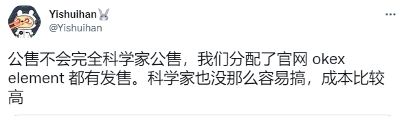 易老板发推说公售不会科学家公售,但结果是在block=14020984 Block0解决战斗,全部科学家包场。
