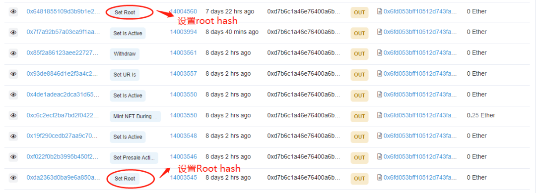 项目方发送的setStatus TX在14020982时在TXpool被监听到