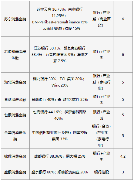 2019年5月,百度旗下的度小满金融持有哈银消费金融30%的股权,出资4.5亿元,此外,百度金融还拥有有钱花和百度钱包两种产品。腾讯目前已推出微粒贷、微车贷、微装贷等诸多产品,京东的金融业务虽起步较晚,但其消费金融业务——白条和金条在业内较为知名,受益于线上消费场景,京东扩张迅速,但腾讯与京东尚未发布有关设立消费金融公司的意向。