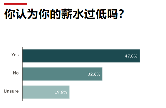 不过,尽管过去一年总体工资涨幅明显,近一半的科技工作者还是觉得自己的工资「过低」了。47.8%的被调查者觉得没有拿到足够的钱。这个比例相比2020年上涨了将近2%。