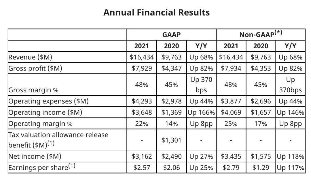 AMD 2021全年营收164.34亿美元,同比增加68%