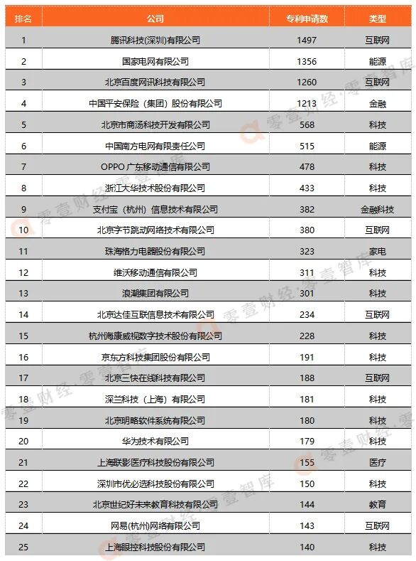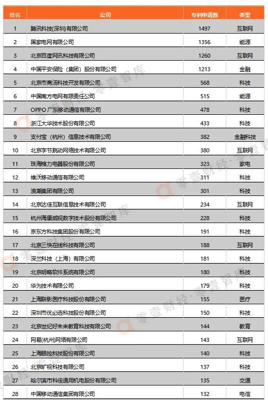 √面对全球数字化转型趋势,计算机视觉作为数字科技技术之一,受到互联网、金融、汽车、医疗等行业的关注。√在过去一年,我国累计有超过1.32万家公司参与了计算机视觉专利申请,合计4.58万件。其中,专利申请数量最多的3家企业分别是腾讯、国家电网和百度。√从专利产业分布情况来看,智慧汽车、智慧医疗和智慧交通是参与者规模最多的3个赛道,且智慧汽车和智慧医疗创新活跃度最为显著,这也意味着这两赛道正处于竞争激烈阶段。从创新集中度情况来看,智慧能源和智慧文娱马太效应明显,专利主要集中在头部企业手中。√长期来看,在碳排放政策和后疫情时代影响下,智能汽车和智慧医疗将持续成为社会焦点,同时也是数字化智能化转型的主要场景。在今年3月,十三届全国人大四次会议表决通过第十四个五年规划,提出借助数字科技对行业进行数字化智能化升级改造。计算机视觉作为人工智能核心技术之一,涵人脸识别、图像识别、光学符号识别OCR、姿态识别等多个领域,被广泛应用于各行业间的智能化升级转型。例如,自动驾驶、智能安防、医疗影像均有计算机视觉技术的身影。包括金融、制造、农业、医疗、教育在内的多个行业在近几年相继开展计算机视觉相关技术的探索和研究。在此背景下,我国每年专利申请数量逐年攀升。截至2021年6月,计算机视觉相关专利申请数量累计达到47.12万件。零壹智库数据统计显示,过去一年(2020年7月至2021年6月),我国有1.32万家公司参与了计算机视觉专利申请,合计申请总量达到4.58万件。二、计算机视觉专利排行榜TOP 100(2020.7-2021.6)按照专利申请数量,零壹智库发布了2021年计算机视觉专利榜单TOP100。其中,进入前10的企业分别是腾讯(1497件)、国家电网(1356件)、百度(1260件)、平安集团(1213件)、商汤科技(568件)、南方电网(515件)、OPPO(478件)、大华股份(433件)、蚂蚁集团(382件)和字节跳动(380件)。这100家公司当中,涵盖了互联网科技公司、家电制造商、汽车制造商、金融机构、医疗科创企业、金融科技公司、教育科创企业、电信公司等。整体来看,6成以上是互联网科技公司。其中,专注于人工智能垂直领域的公司数量最大。例如深兰科技(181件)、明略软件(180件)、云从科技(118件)。还有部分人工智能科技公司专注于细分赛道,以此构建核心竞争优势。
