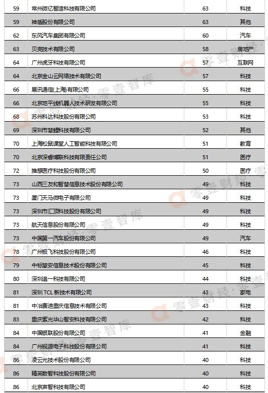 - 如专注于计算机视觉赛道的公司有商汤科技(568件)、创新奇智(105件)、眼控科技(140件)、旷视科技(137件)、紫光华智(42件)、凌云光(40件);