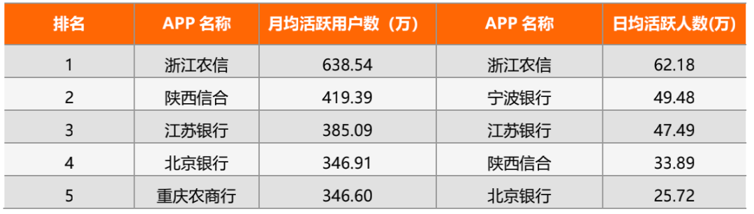(二)入选手机银行TOP 100的中小金融机构前5名