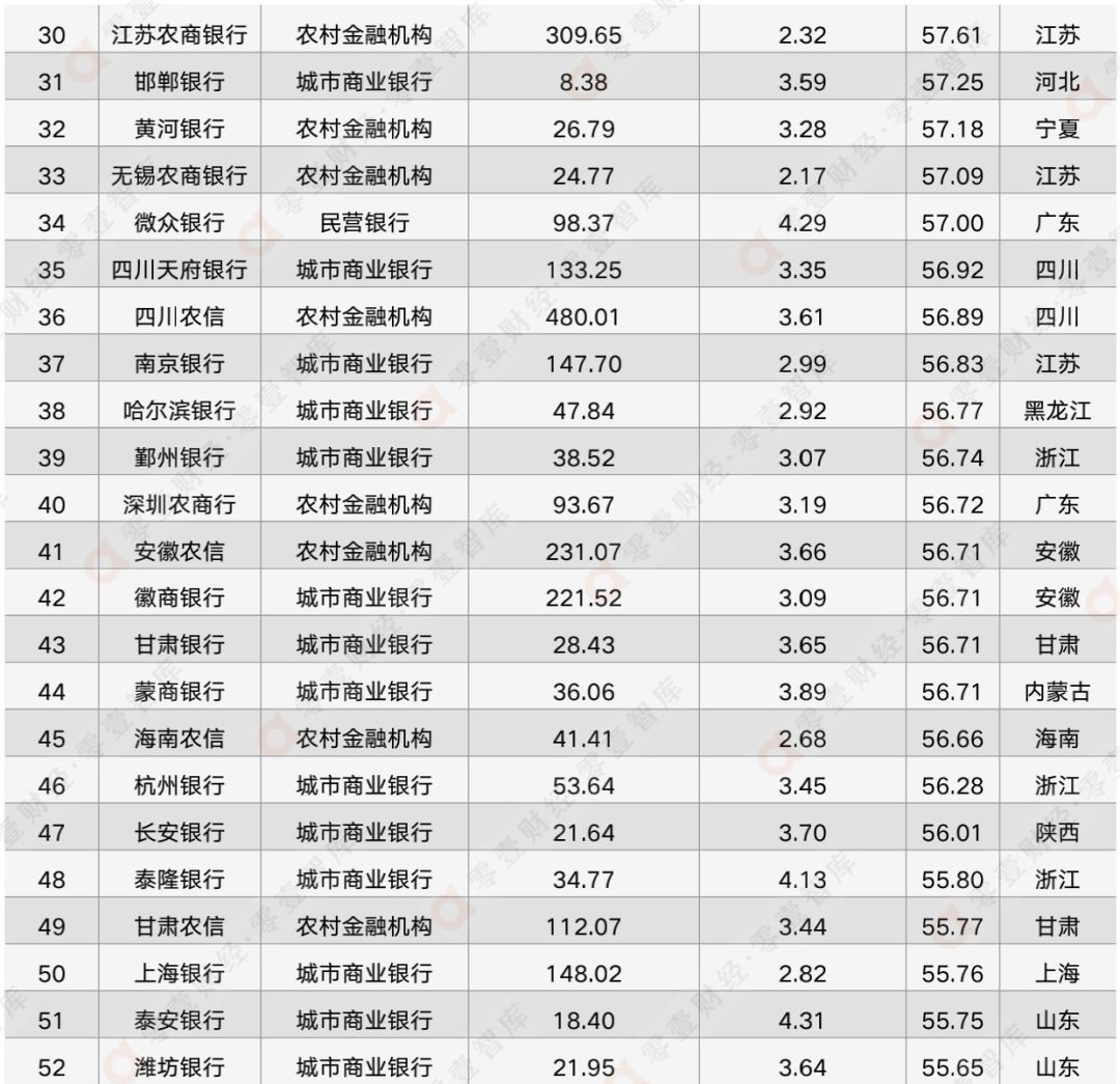 (二)聚焦中小银行:陕西信合、北京银行等5家成为TOP 30佼佼者