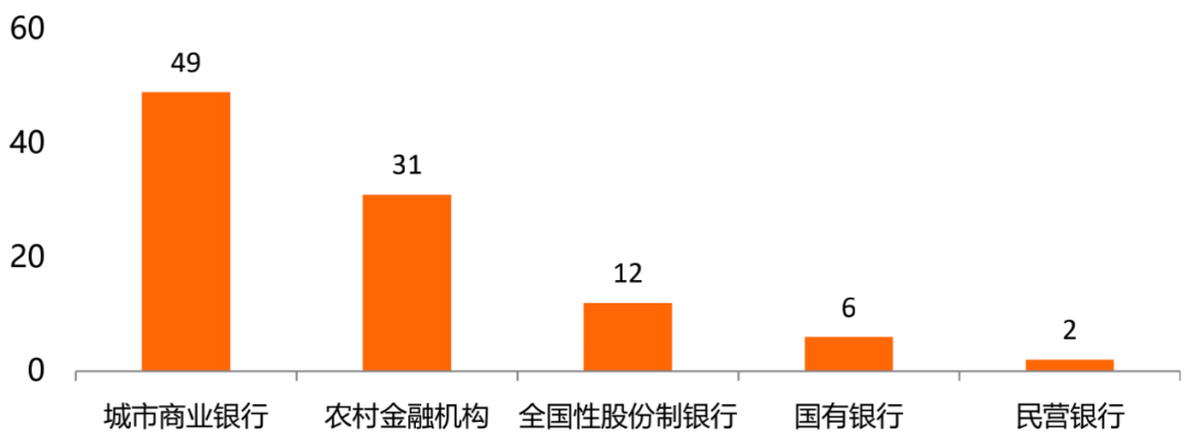 二、TOP 100机构类别:全国性银行占比18%,山东省入选11家中小银行